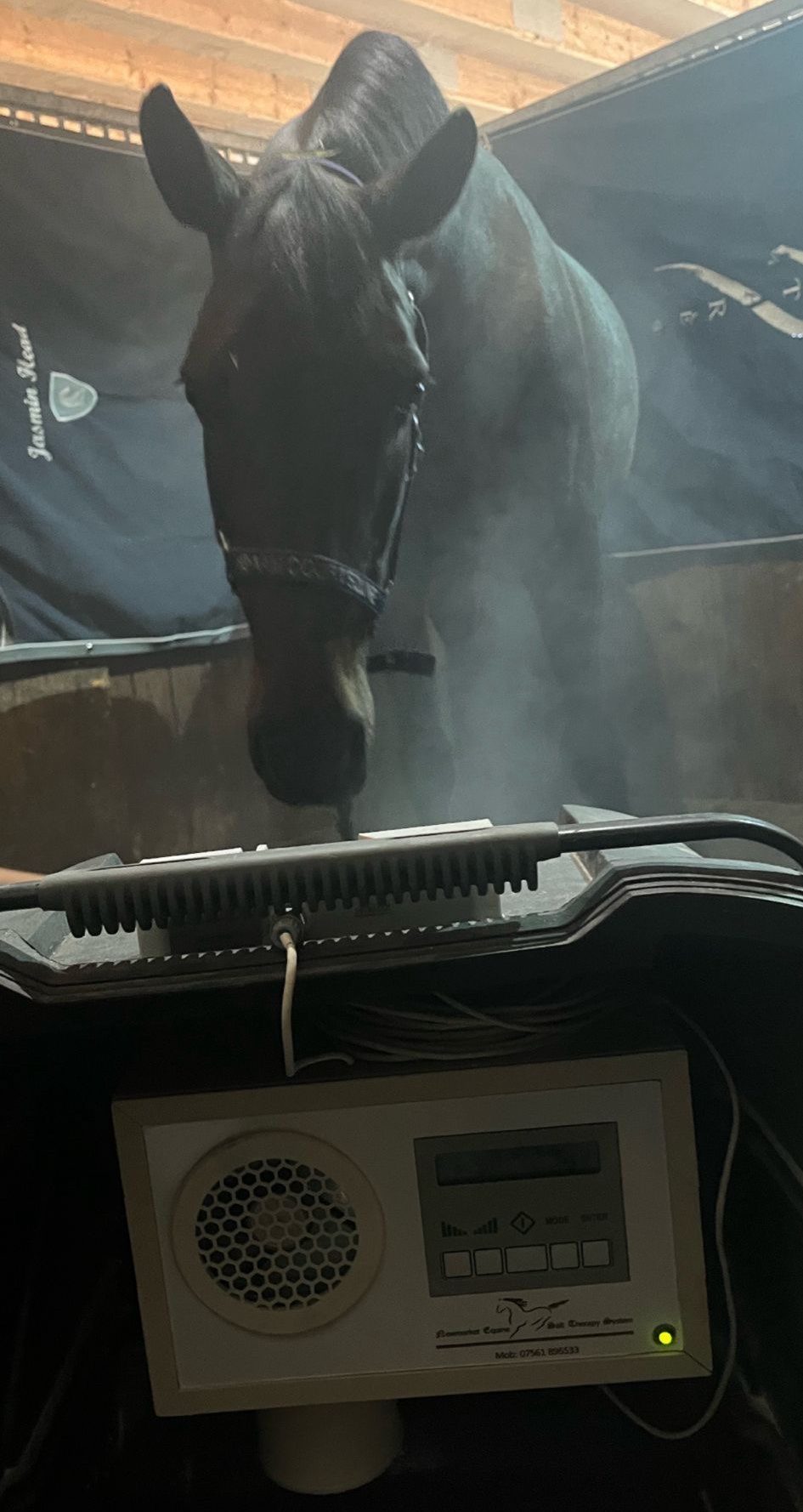 The salt used is 100% natural, medical grade and drug free. The procedure is delivered over a period of sessions through Newmarket Equine Salt Therapy System, which is innovative in the equine therapy field and is the only medically certified controlled device on the market. The system allows microscopic particles of salt to be dispersed into the air. The tiny particles are inhaled deep into the lungs where the greatest healing can be achieved, aiding mucus release and reducing inflammation within the airways for easier breathing. Salt therapy not only cleanses from the inside but gives great results on the outside, assisting to alleviate skin issues such as sweet itch and ringworm.